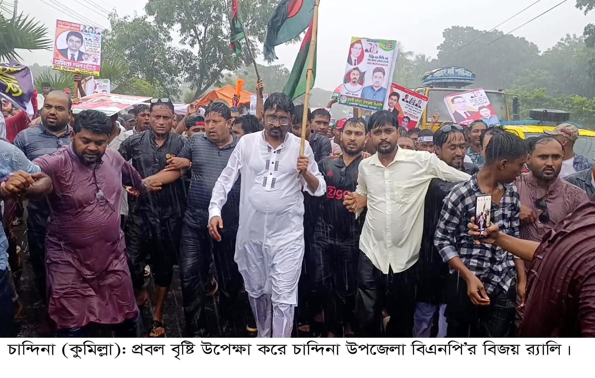মঙ্গলবার (৫ আগস্ট) বিকেল ৪টায় বৃষ্টি উপেক্ষা করে এই আনন্দ বিজয় মিছিলটি চান্দিনা পৌর শহরের প্রধান প্রধান সড়ক প্রদক্ষিণ করে। বিএনপির হাজার হাজার নেতাকর্মীর অংশগ্রহণে পৌর এলাকা এক সময় উত্তাল হয়ে ওঠে। মিছিলে নেতৃত্ব দেন উপজেলা বিএনপির সভাপতি আতিকুল আলম শাওন।