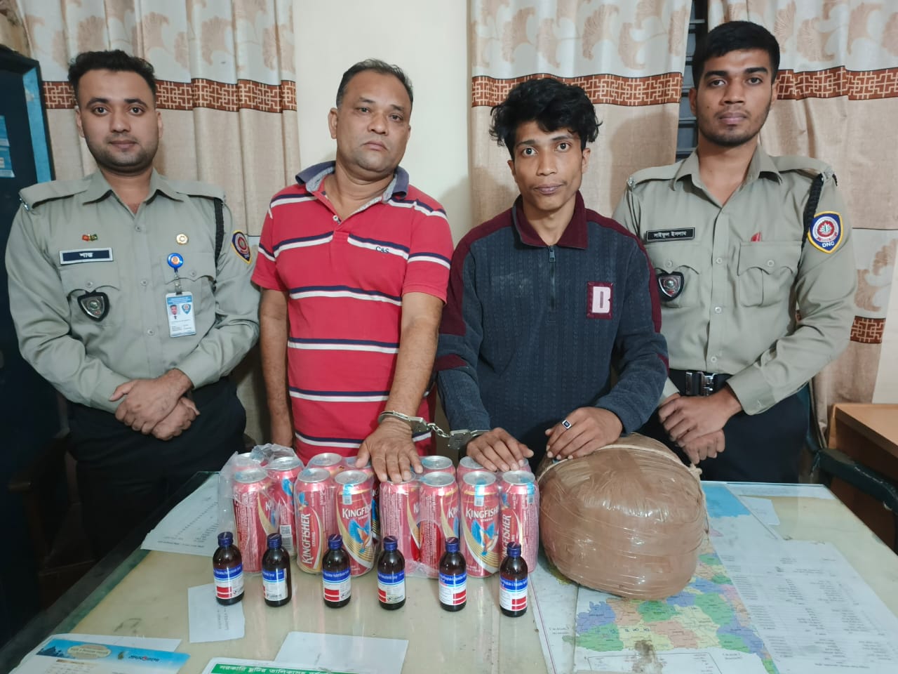 ESKUF কোডিন ফসফেট মিশ্রিত সিরাপ ০৬ বোতল (মোট ৬০০ মিলিলিটার),গাঁজা ০১টি বড় পোটলা, ওজন ৪ কেজি,